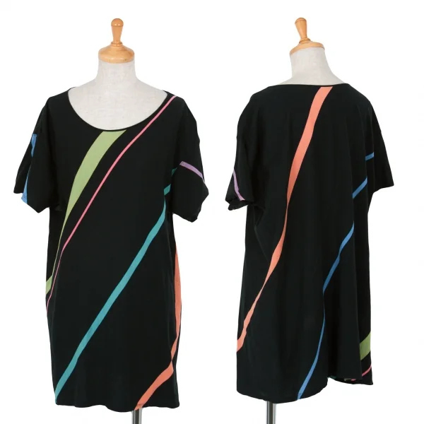 【SALE】ヨーガンレールJURGEN LEHL コットン斜行プリントビックシルエットTシャツ 黒他M