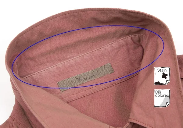 襟、袖、肩、後ろ身頃薄汚れ、シミあります(写真参照)。クリーニング済み。