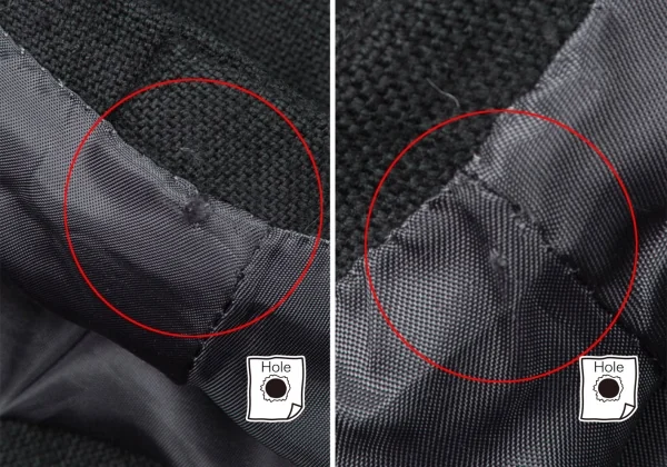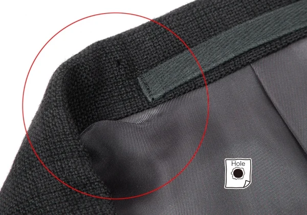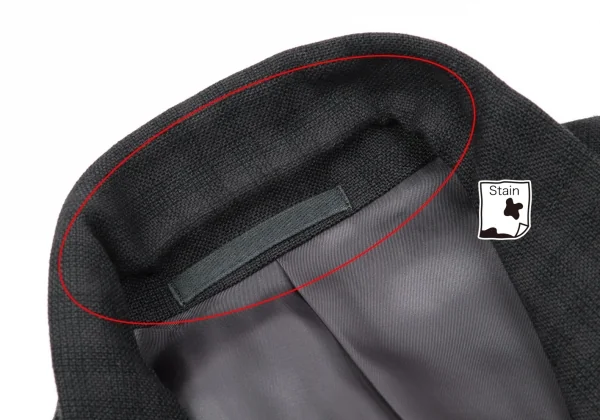 襟裏に汚れ、裏地裾に変色あり。襟、袖裏に小穴あり。ネーム刺繍あり。(写真参照)その他に目立ったシミ、汚れ、ほつれ等なくいい状態です。クリーニング済み