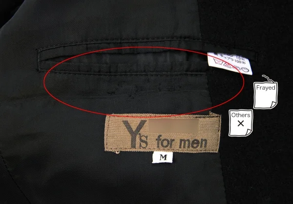 タグにネーム刺繍跡、ネーム書き込みがあります(写真参照)その他目立ったシミ、汚れ、ほつれ等なくいい状態です。クリーニング済み