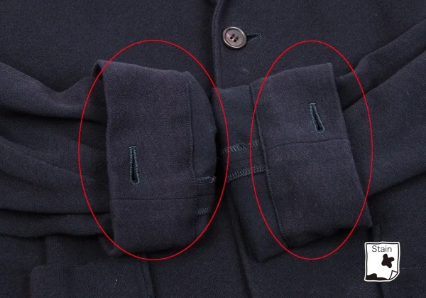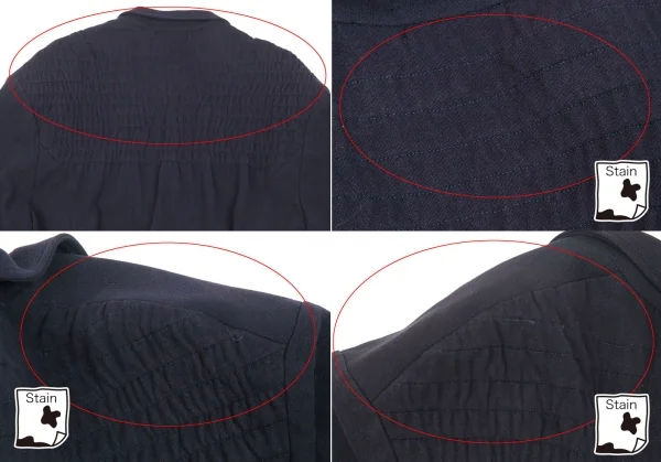 襟裏、袖裏に薄汚れあり。後身頃、肩に変色あり。(写真参照)クリーニング済み。