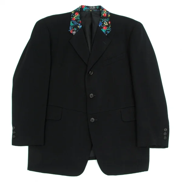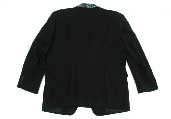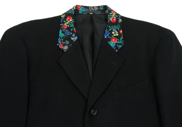 コムデギャルソンオムプリュスCOMME des GARCONS HOMME PLUS ウールボタニカル柄切替ノッチドラペルジャケットセットアップ 黒M