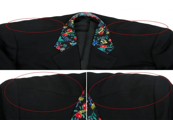 ジャケット:両肩にヤケ、襟裏部分に薄汚れ。パンツ:品質タグに書き込みがあります(画像参照)。その他目立ったシミ、汚れ、ほつれ等なくいい状態です。クリーニング済み