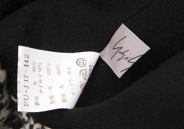 ヨウジヤマモト ファムYohji Yamamoto FEMME 千鳥格子ウール変形ショートジャケット 白黒1
