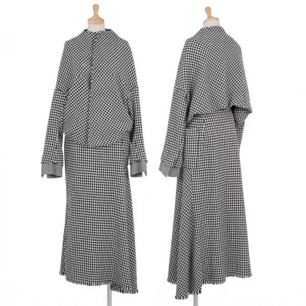 ヨウジヤマモト ファムYohji Yamamoto FEMME 千鳥格子ウールアシメロングスカート 白黒1