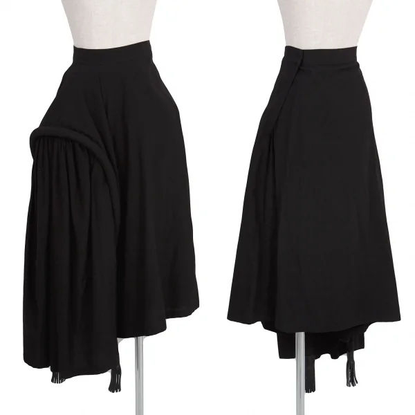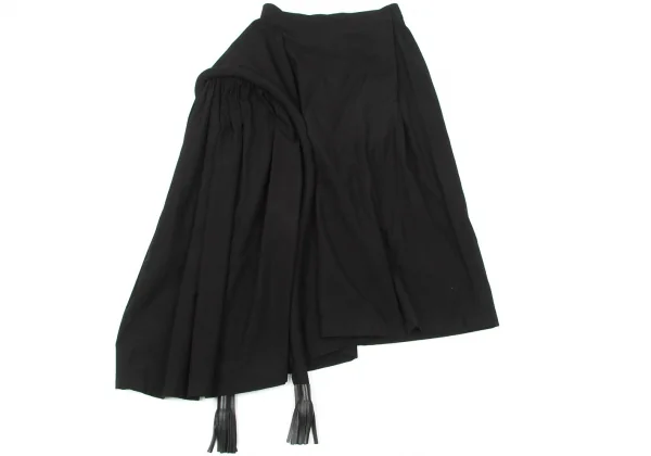 ヨウジヤマモト ファムYohji Yamamoto FEMME キュプラコットンレザーフリンジ変形スカート 黒1