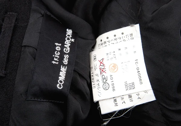 トリコ コムデギャルソンtricot COMME des GARCONS メルトンウールステンカラードルマンコート 黒M位
