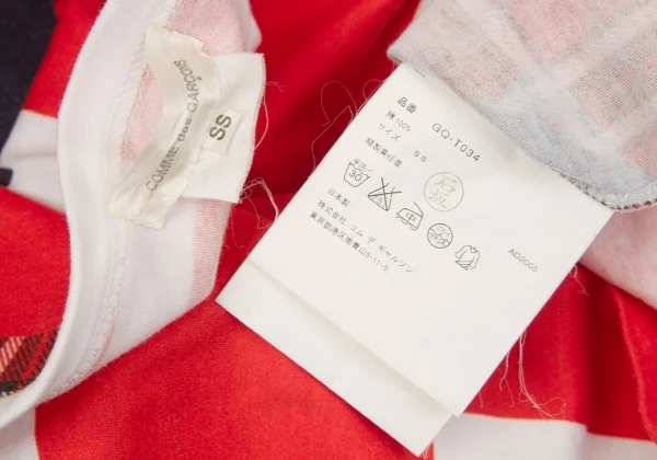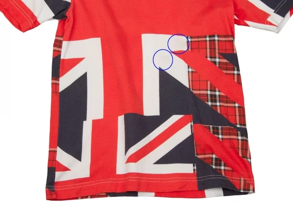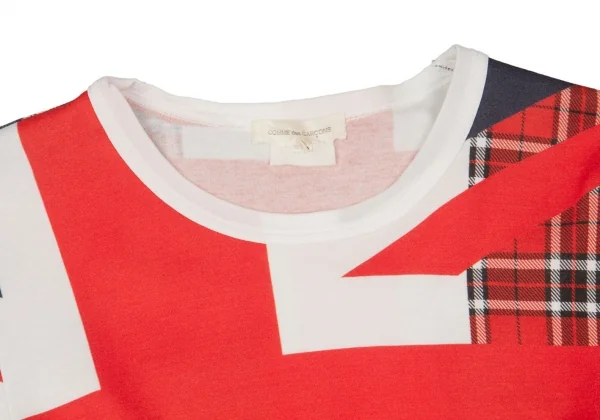 【SALE】コムデギャルソンCOMME des GARCONS タータンチェックユニオンジャックプリントTシャツ 白赤紺SS
