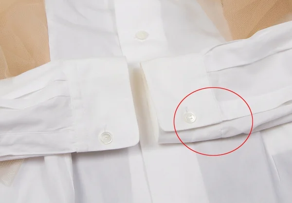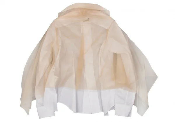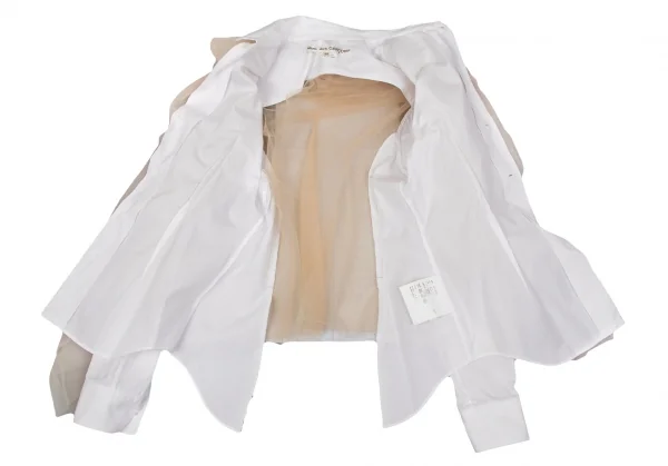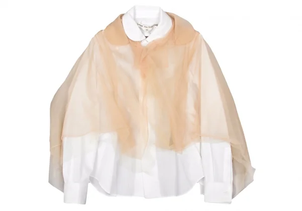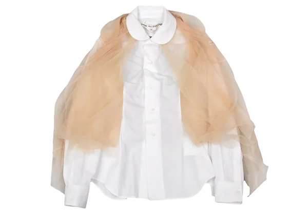 コムデギャルソンCOMME des GARCONS チュール切替デザインラウンドカラーシャツ ベージュ白XS