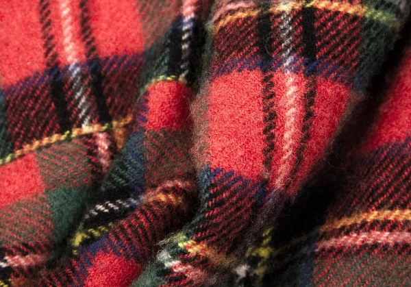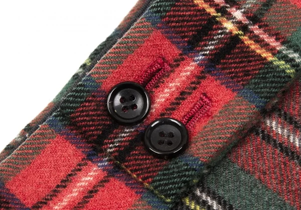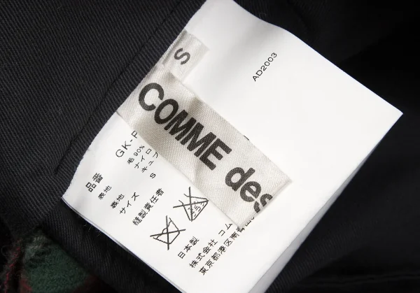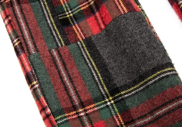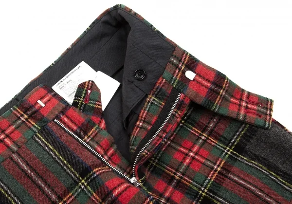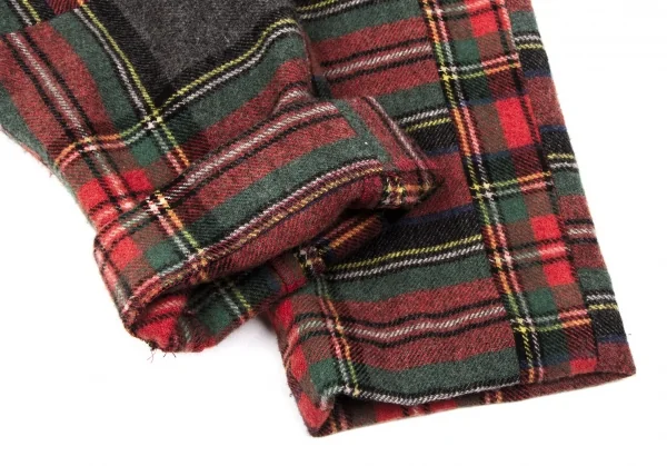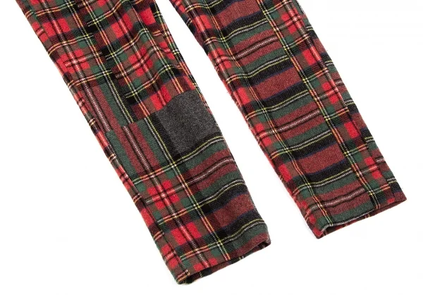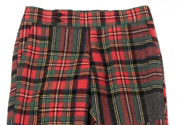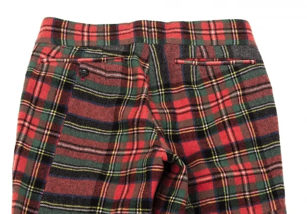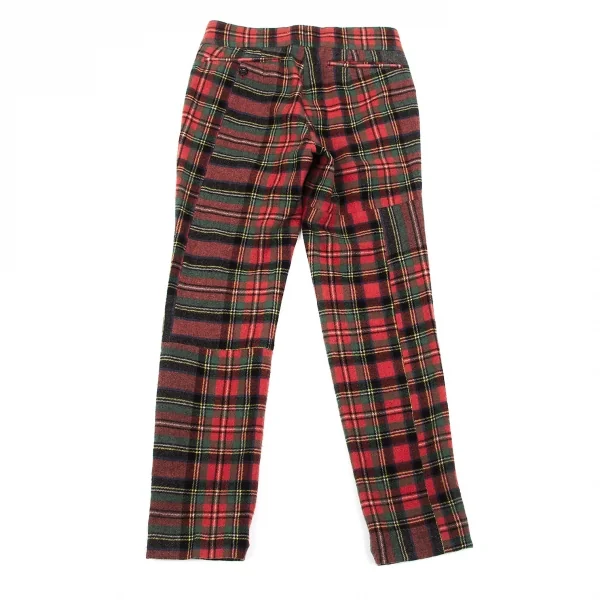 コムデギャルソンCOMME des GARCONS ウールナイロンタータンチェックテーパードパンツ 赤緑他S