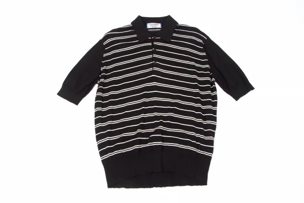 ヒステリックグラマーHYSTERIC GLAMOUR×JOHN SMEDLEY コットンボーダーニットポロシャツ 黒白M位