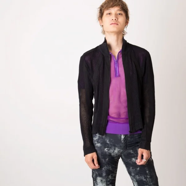 【SALE】イッセイミヤケ メンISSEY MIYAKE MEN メッシュジップアップポロシャツ F パープルF(S位)