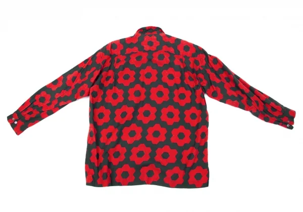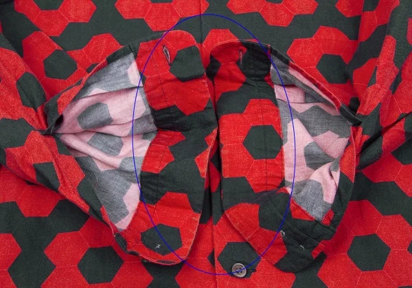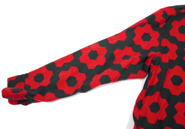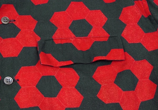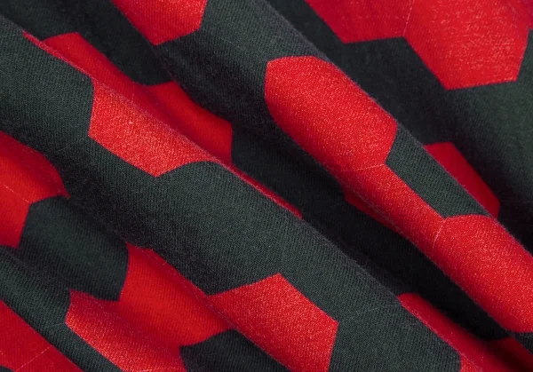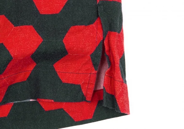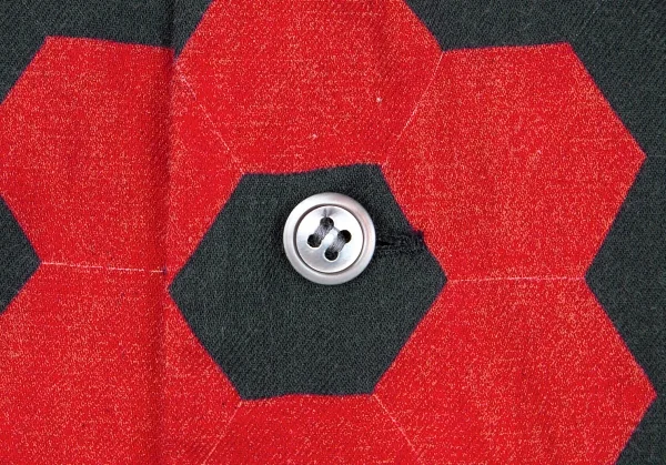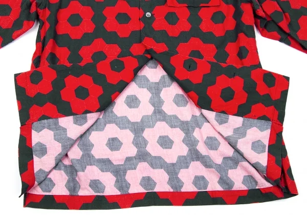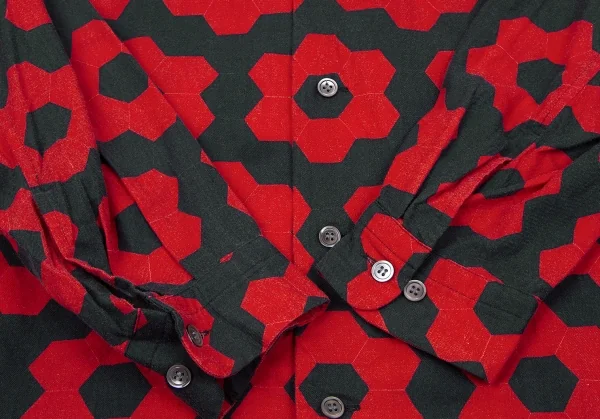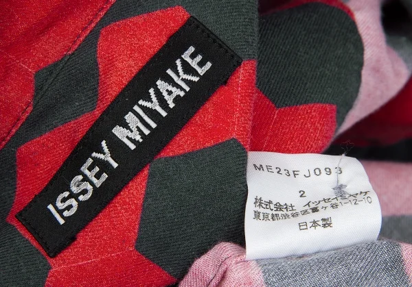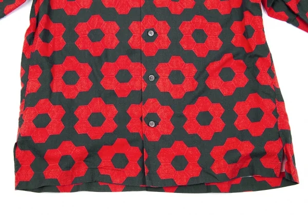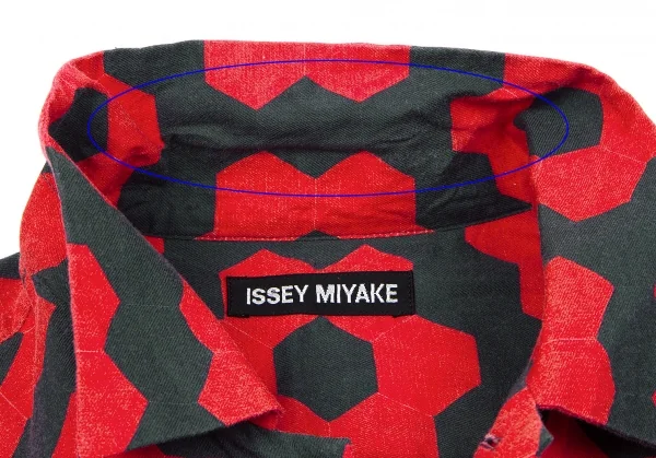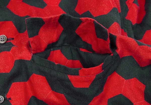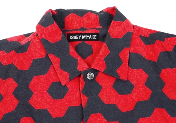 イッセイミヤケ メンISSEY MIYAKE MEN コットン幾何学柄プリントシャツ 赤黒2