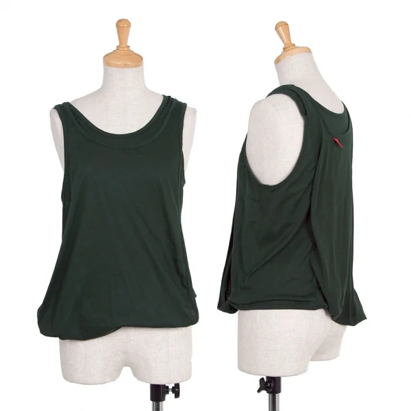 【SALE】ワイズ レッドレーベルY's Red Label 切り替えギャザーデザインタンクトップ 深緑2