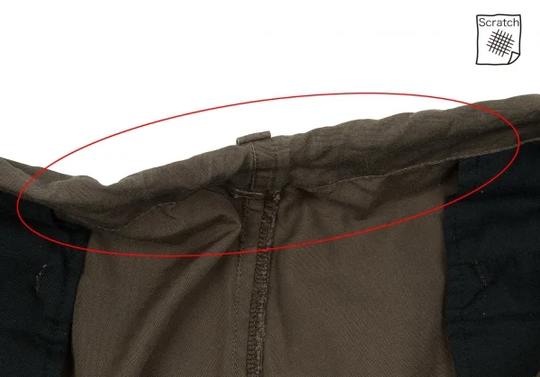 ウエスト裏・裾にスレ、左足に生地のダメージ、股にシミがあります(写真参照)。クリーニング済み。