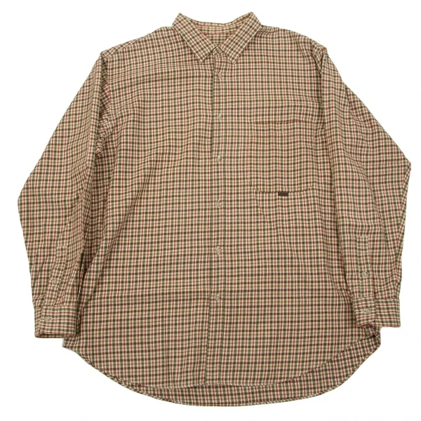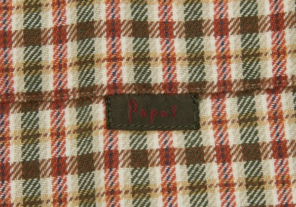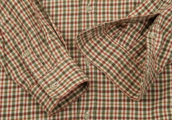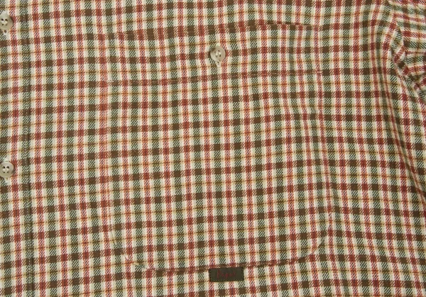 【SALE】パパスPapas コットンチェックシャツ カーキ赤他L