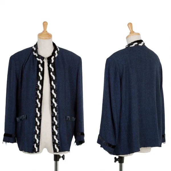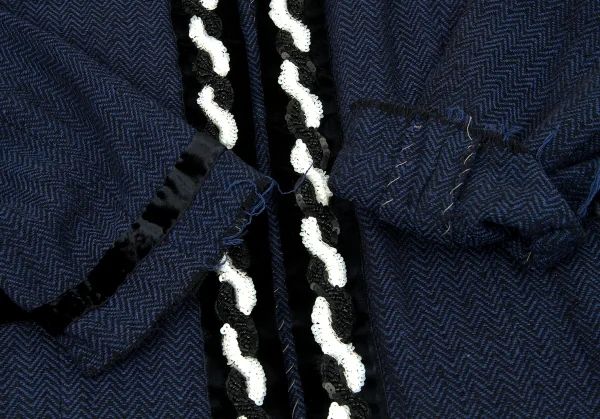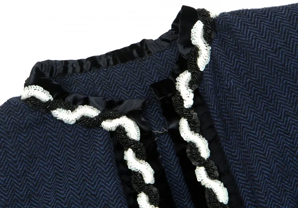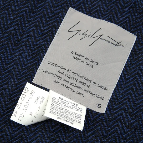 ヨウジヤマモトファムYohji Yamamoto FEMME シルクヘリンボーンセットアップスーツ 青黒白S