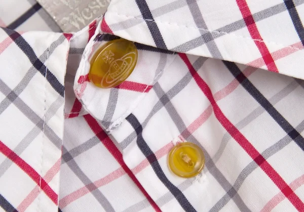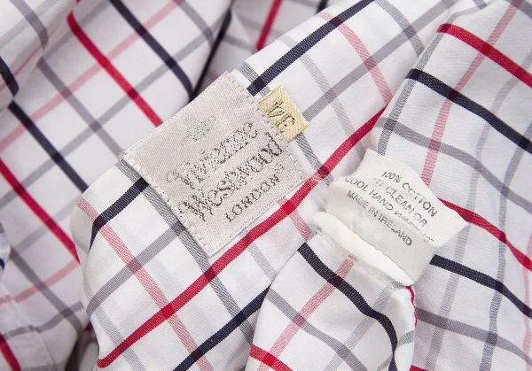【SALE】ヴィヴィアンウエストウッドVivienne Westwood オーブ刺繍グラフチェックシャツ 白黒赤他M位