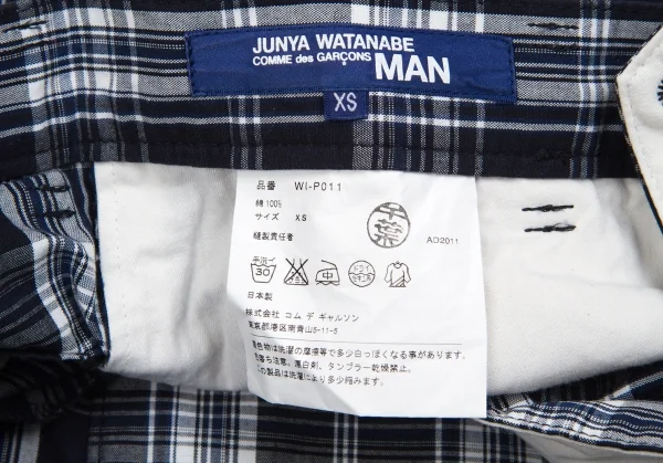 【最終値下げ】ジュンヤワタナベマン コムデギャルソンJUNYA WATANABE MAN COMME des GARCONS チェックコットンハーフパンツ 紺白XS