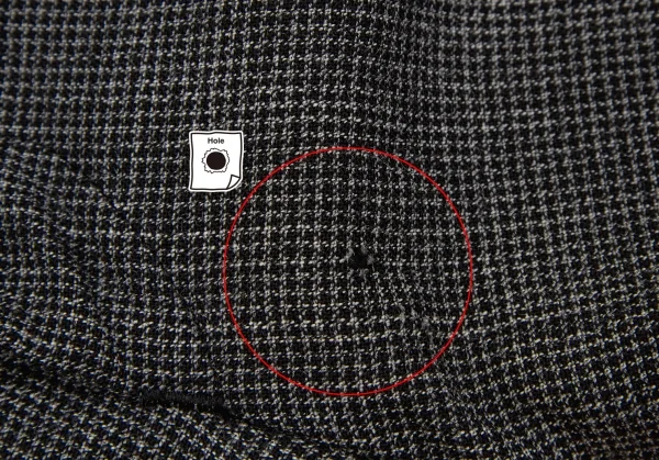 前に穴あり。(写真参照)その他に目立ったシミ、汚れはありません。クリーニング済み