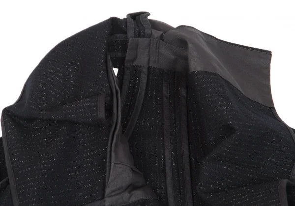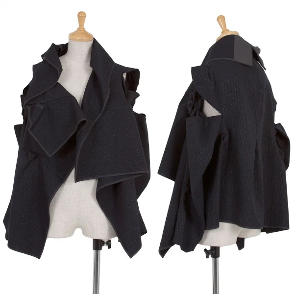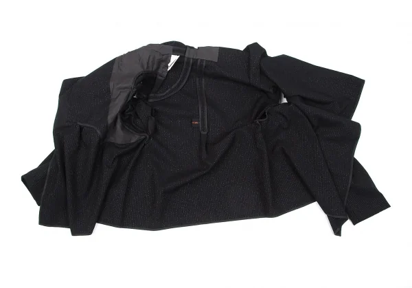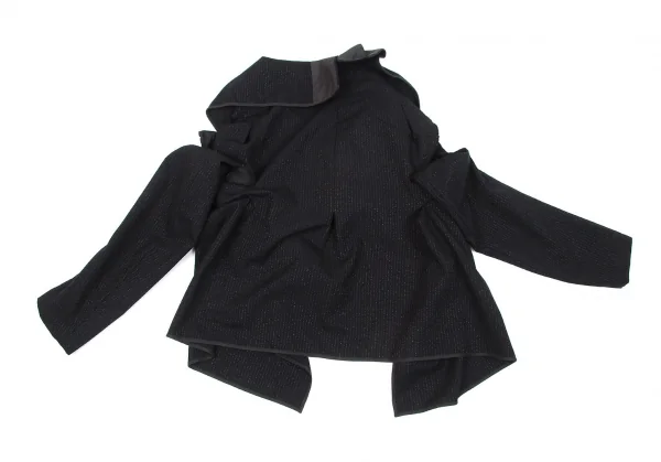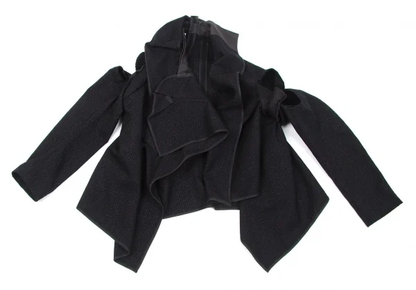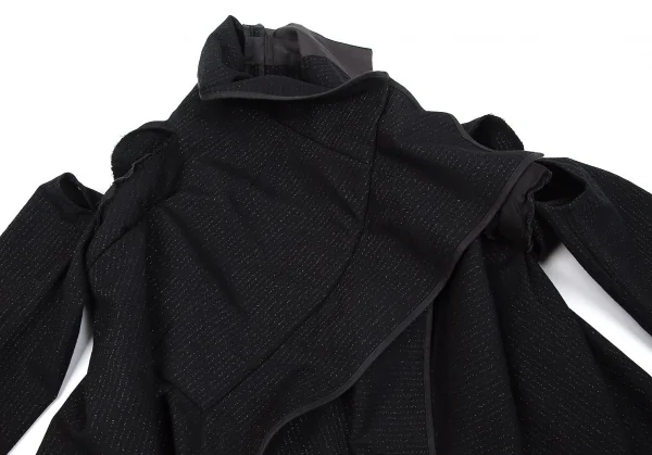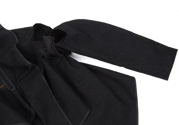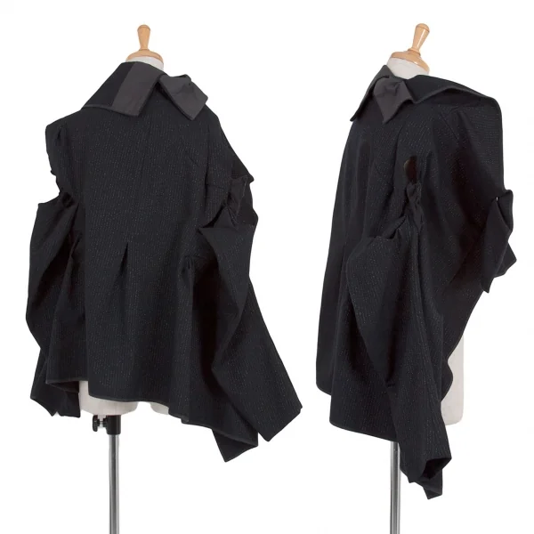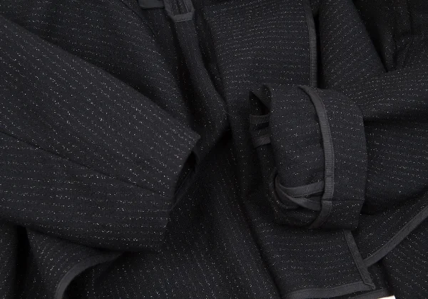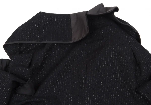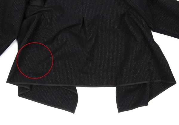 コムデギャルソンCOMME des GARCONS ウールポリラメストライプ変形ジャケット 黒シルバーS