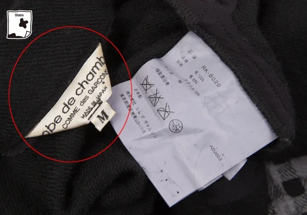 左袖にインクシミ、シミがあります(写真参照)クリーニング済み。