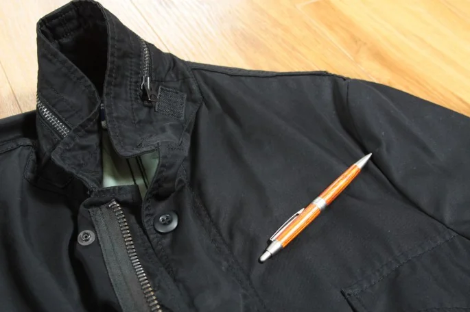 左肩に薄汚れがありますが目立たない程度です(写真ペン先参照)。そこ以外は目立ったシミ、汚れ、ほつれ等なくいい状態です。クリーニング済み