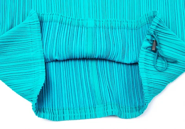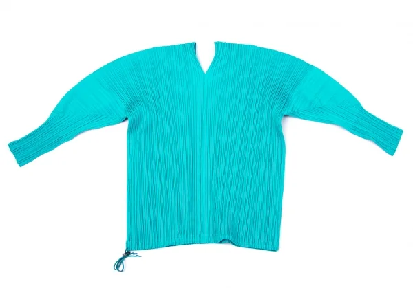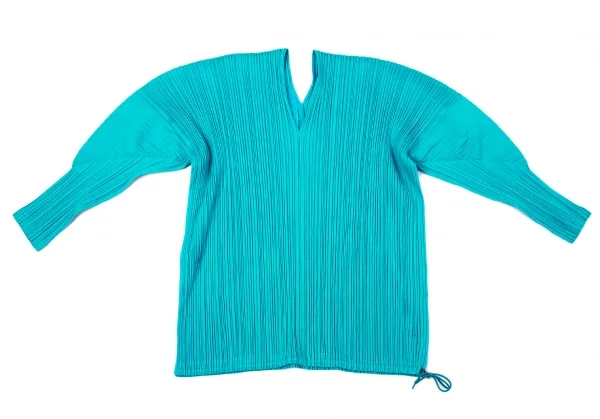 【SALE】プリーツプリーズPLEATS PLEASE 裾ドローコードVネックトップス ターコイズ3