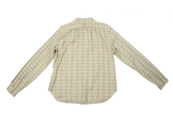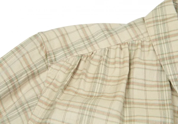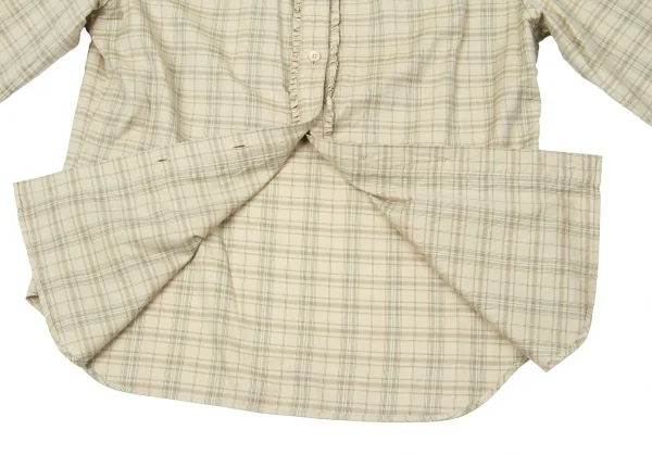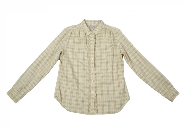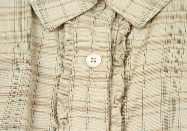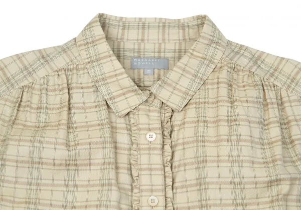 【SALE】マーガレットハウエルMARGARET HOWELL コットン前開きフリルチェックシャツ ベージュ茶緑3