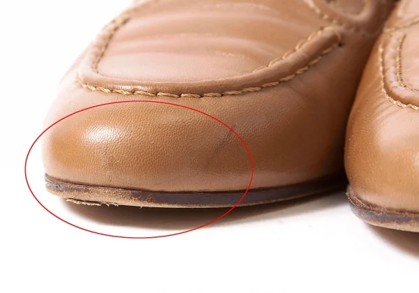 履き皺、爪先、踵部分にスレあり(写真参照)。その他にソールの減りも少なく目立った汚れ、シミ等なくいい状態です。