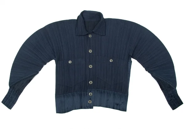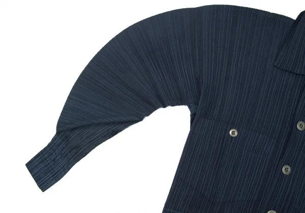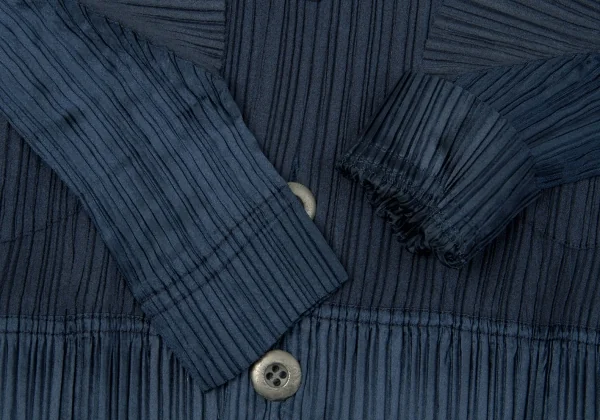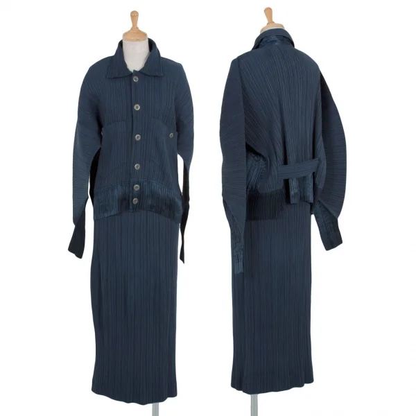イッセイミヤケISSEY MIYAKE起毛プリーツ切替ドルマンスリーブセットアップ 紺M