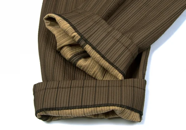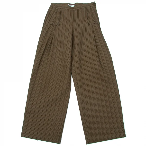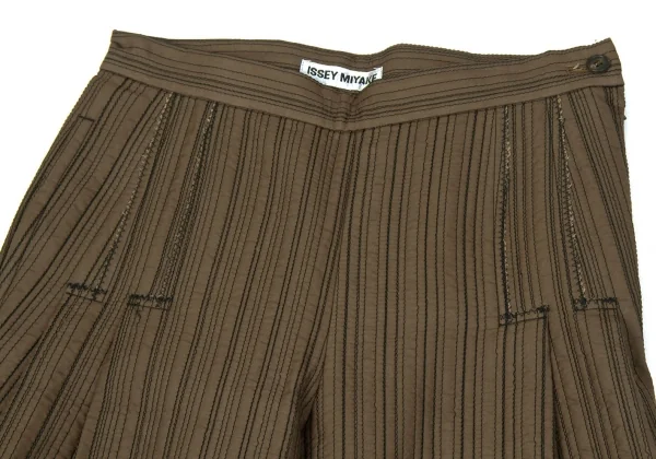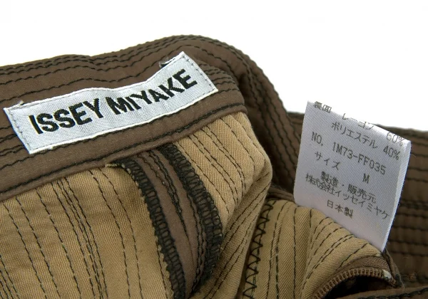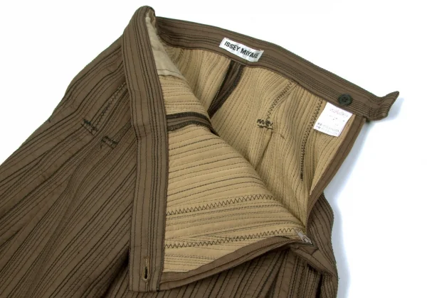 【SALE】イッセイミヤケISSEY MIYAKEステッチデザインタックワイドストレートパンツ ブロンズM