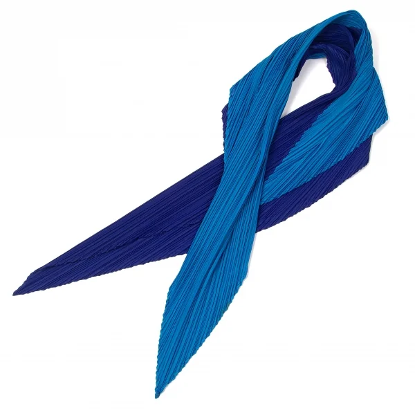 プリーツプリーズPLEATS PLEASE バイカラー切り替えスカーフ 青