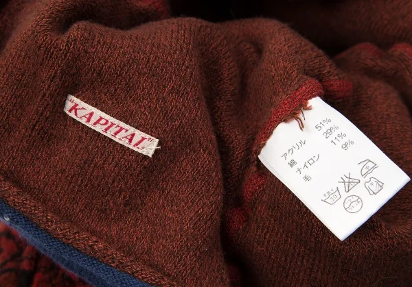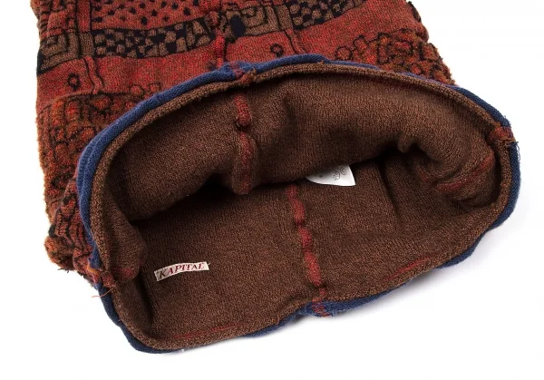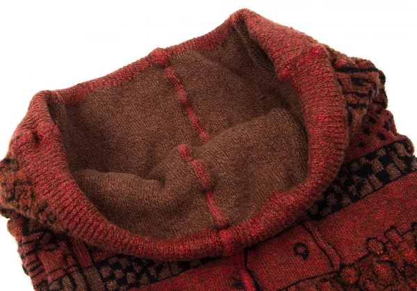 キャピタルKapital 柄編みデザインネックウォーマー 赤茶紺