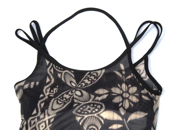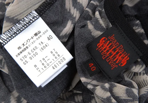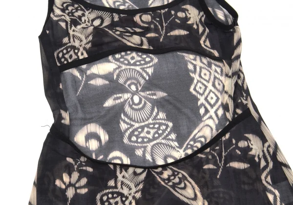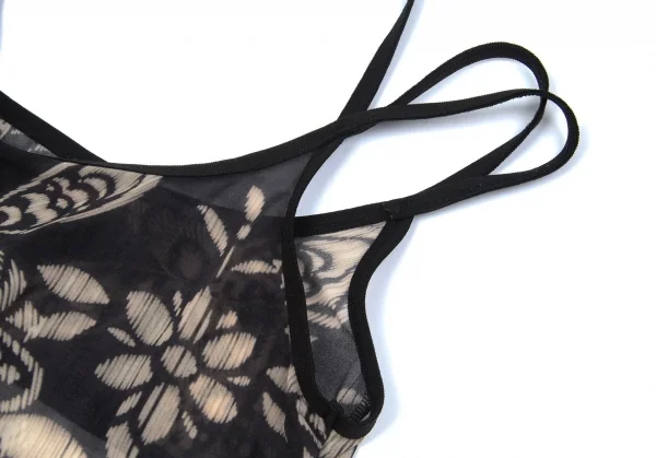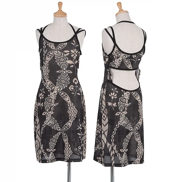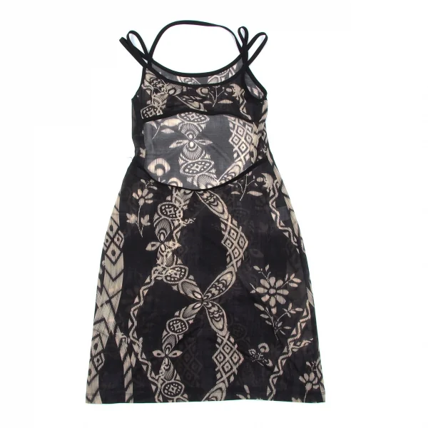 ジャンポールゴルチエJean Paul GAULTIER マオリ風柄プリントキャミワンピース 黒ベージュ40
