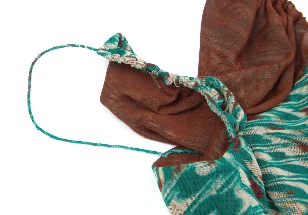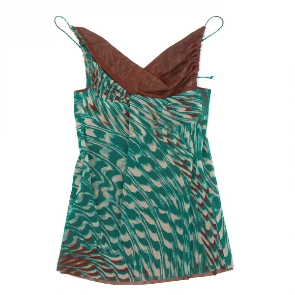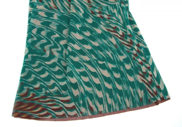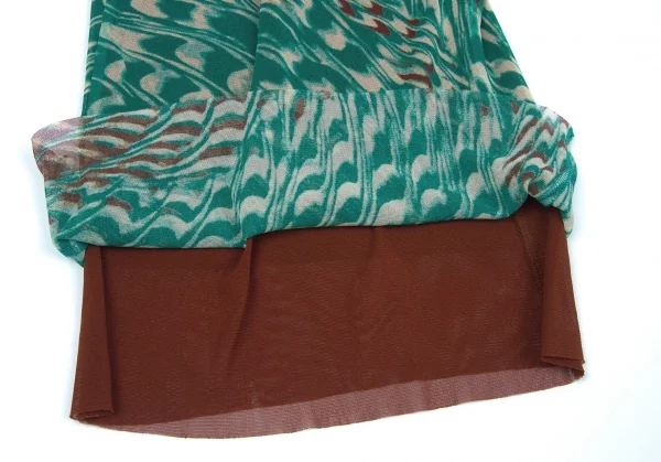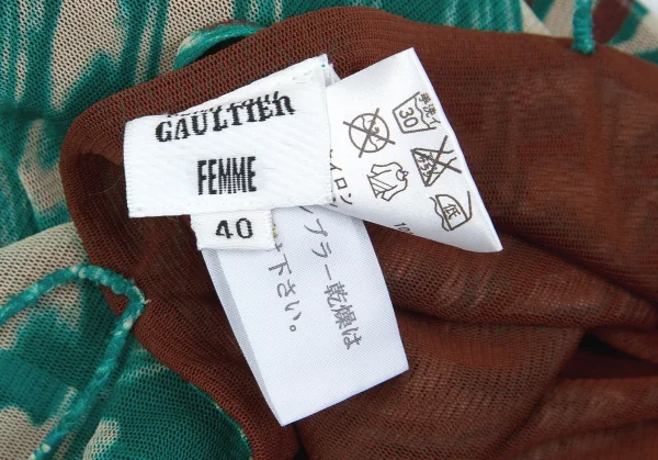 ジャンポールゴルチエファムJean Paul GAULTIER FEMME マーブル柄レイヤードパワーネットセットアップ グリーン茶40