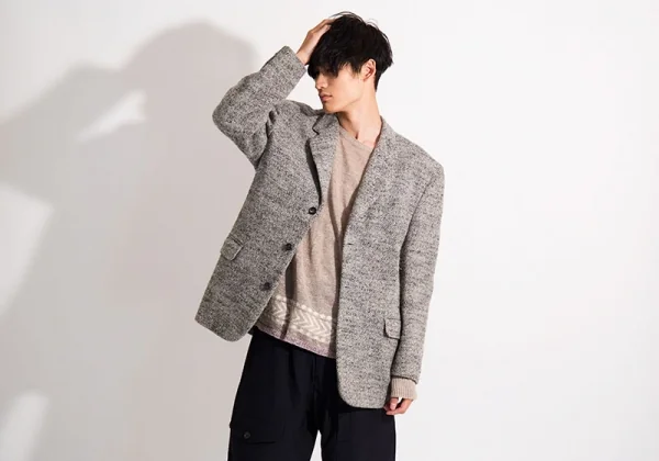 【SALE】コムデギャルソン オムCOMME des GARCONS HOMME ツイードダイヤ柄3Bジャケット グレーM