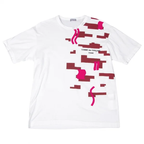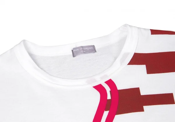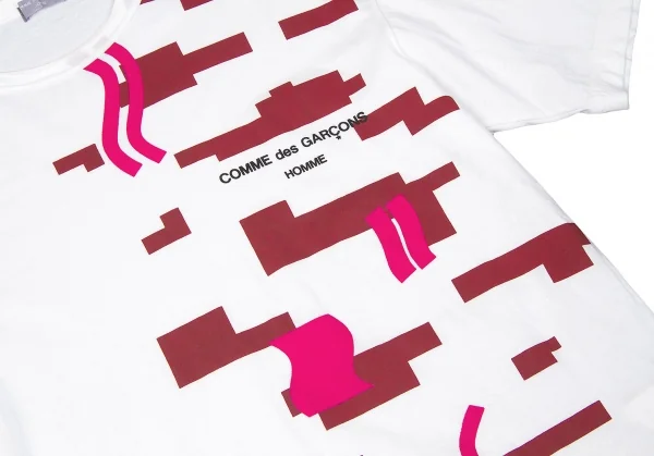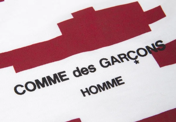 コムデギャルソンオムCOMME des GARCONS HOMME ロゴプリントデザイン半袖Tシャツ 白ボルドーピンクM位