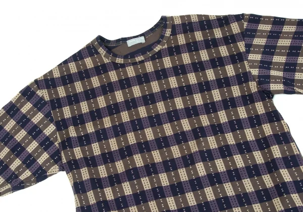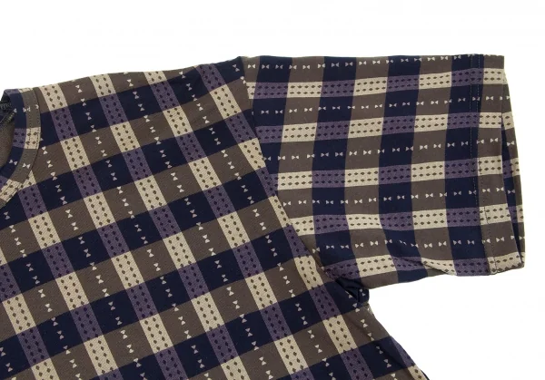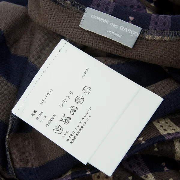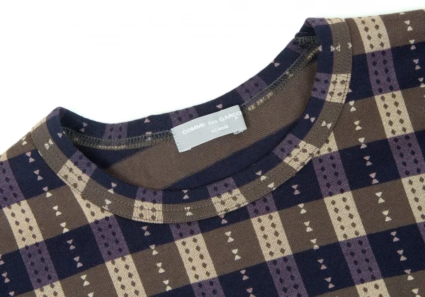 コムデギャルソン オムCOMME des GARCONS HOMME 総柄プリント半袖カットソー 紫ベージュ他M位