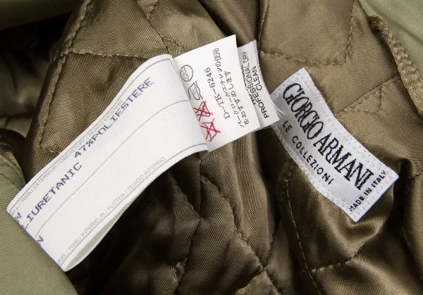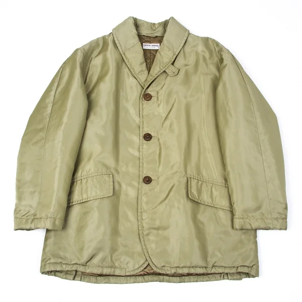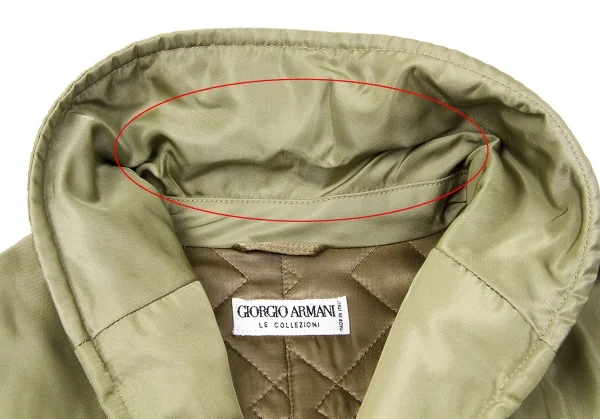 ジョルジオ アルマーニGIORGIO ARMANI ナイロンポリ裏キルティングショールカラージャケット カーキ48