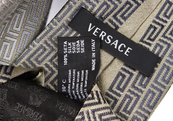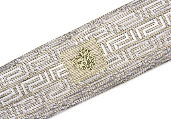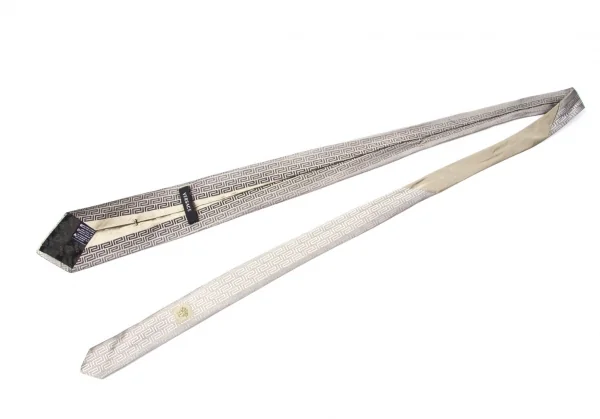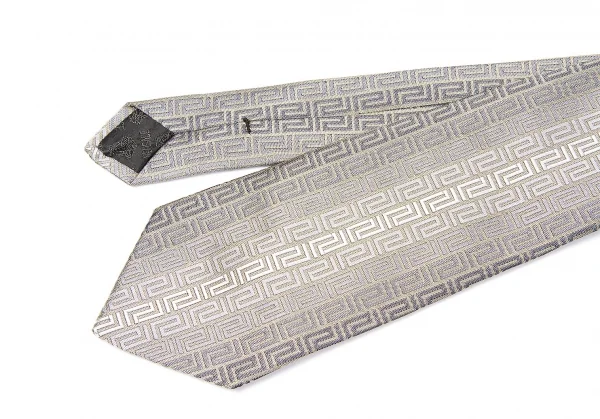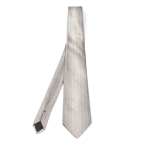 ヴェルサーチVERSACE グレカジャガードシルクネクタイ グレーベージュ