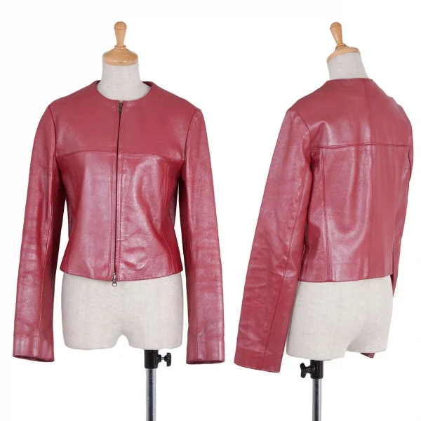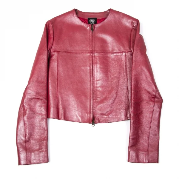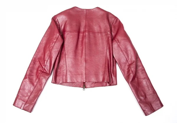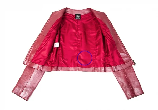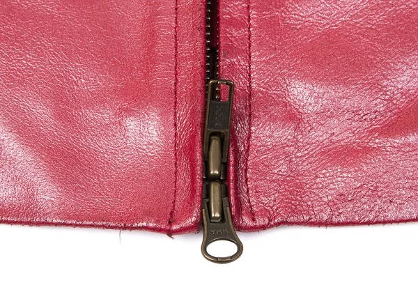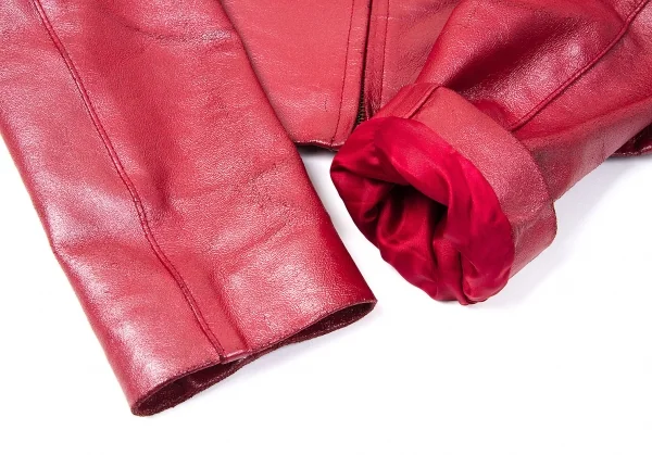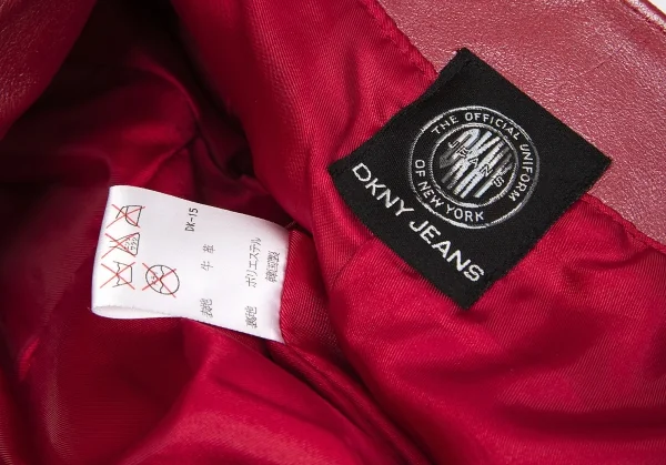 ダナキャランジーンズDKNY JEANS カウレザーシングルライダースジャケット 赤4