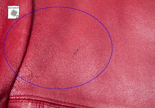 レザー割れあり。汚れ多数あり。裏地にシミあり。(写真参照)その他に目立ったシミ、汚れ、ほつれ等なくいい状態です。クリーニング済み