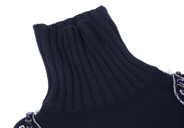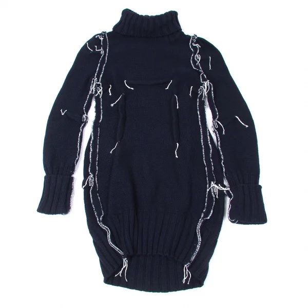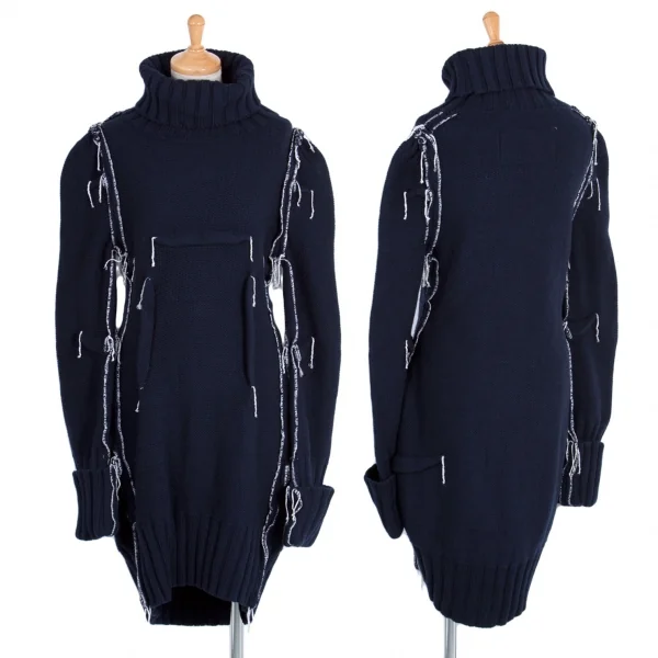 マルタンマルジェラ×エイチアンドエムMaison Martin Margiela×H&M ウールラメ糸装飾ニットワンピース 紺シルバーS