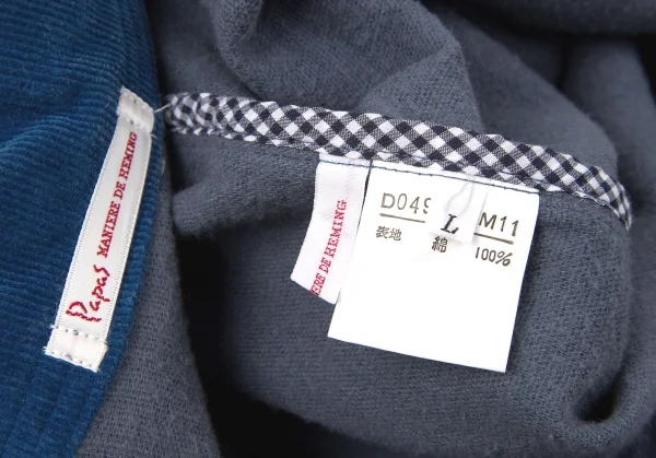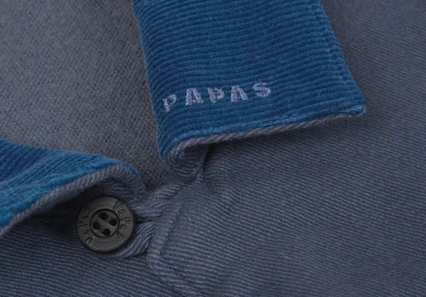 【SALE】パパスPapas 衿コーデュロイ切替コットンカバーオール ブルーグレーL