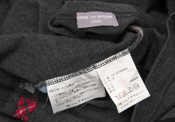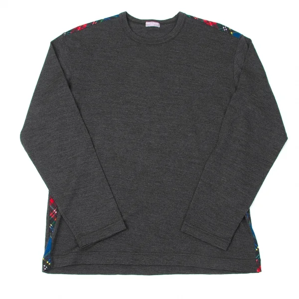 コムデギャルソンオムCOMME des GARCONS HOMME ウールタータンチェック切替カットソー グレー他M位