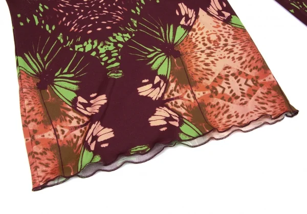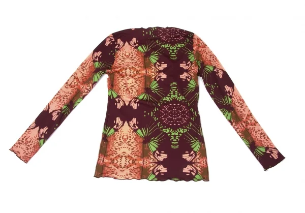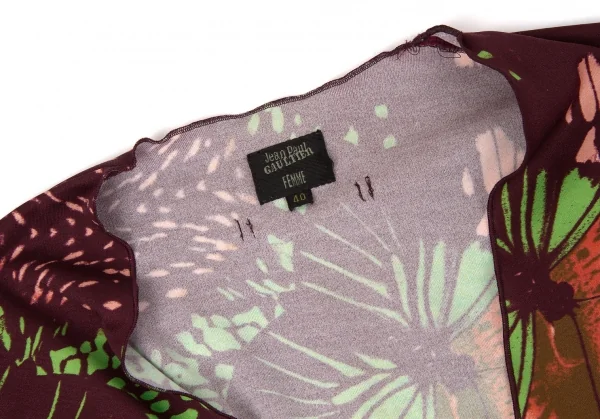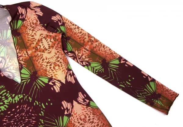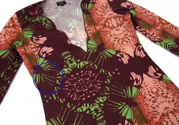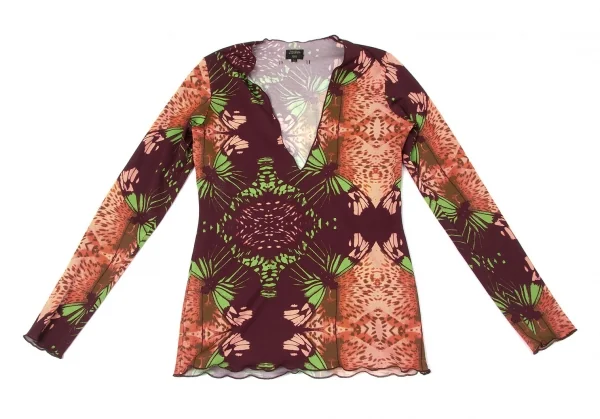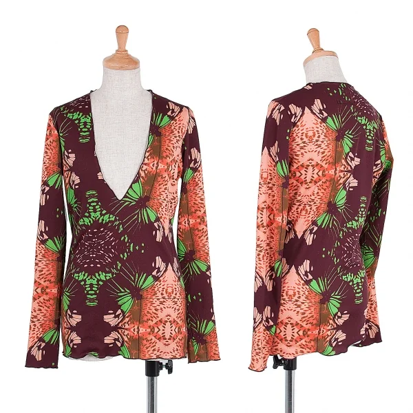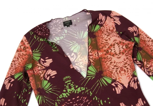 【SALE】ジャンポールゴルチエ ファムJean Paul GAULTIER FEMME 深Vネック蝶柄カットソー オレンジ茶他40