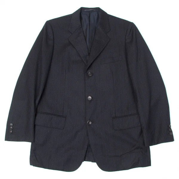 コムデギャルソン オムCOMME des GARCONS HOMME 縫い目出しストライプウールジャケット 紺グレー他S