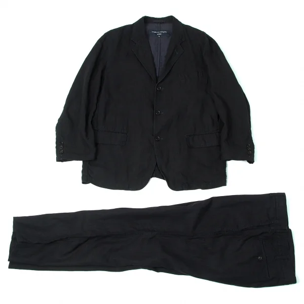 コムデギャルソン オムCOMME des GARCONS HOMME 製品染めリネンパッカリングセットアップスーツ 紺S/M