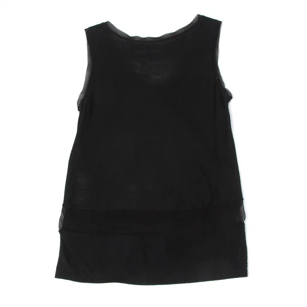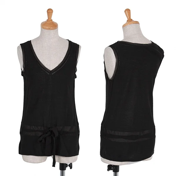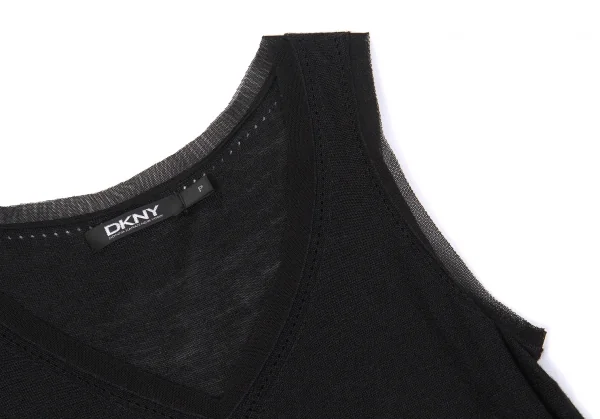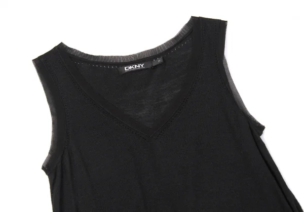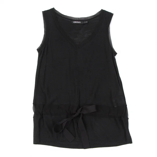 ダナキャランDKNY シルクメッシュ切替ドローコードデザインタンクトップ P 黒S位
